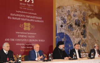 Tiflis/ Wien Ewige Werte und die sich ständig verändernde Welt Symposium zum 90.Geburtstag des georgischen Patriarchen mit Initiative zum interreligiösen Kontakt Mit einem Festplenum am 16.2.23 begann in Tiflis eine zweitägige internationale Konferenz zu Ehren des 90.Geburtstags des georgischen Patriarchen Ilia II. sowie dessen nun 45-jährige Tätigkeit als Patriarch. Die